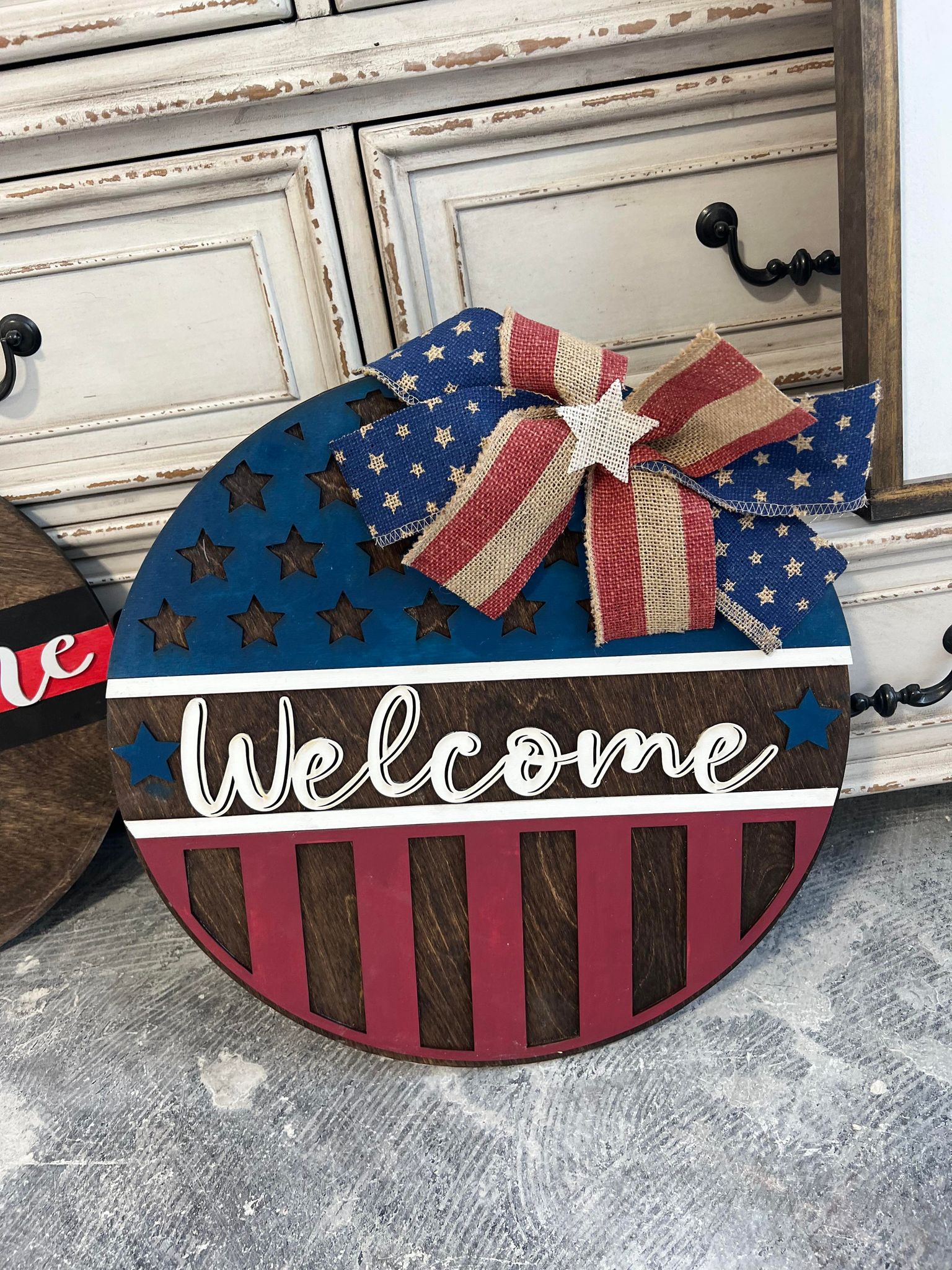 Welcome Patriotic round door hanger